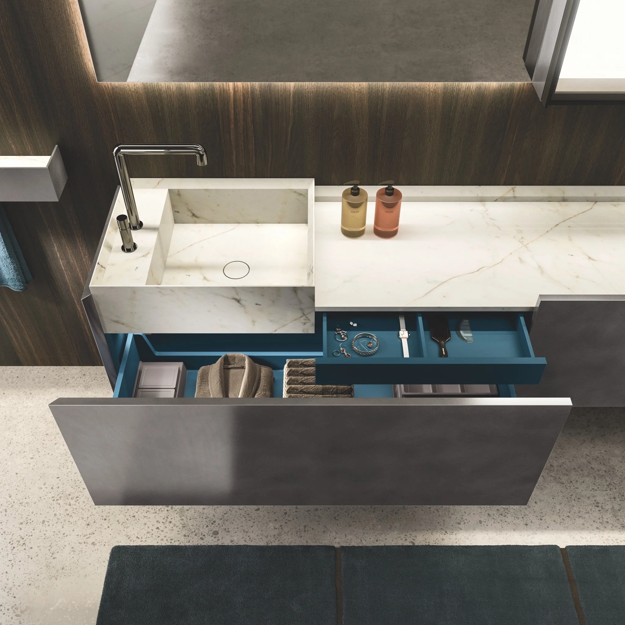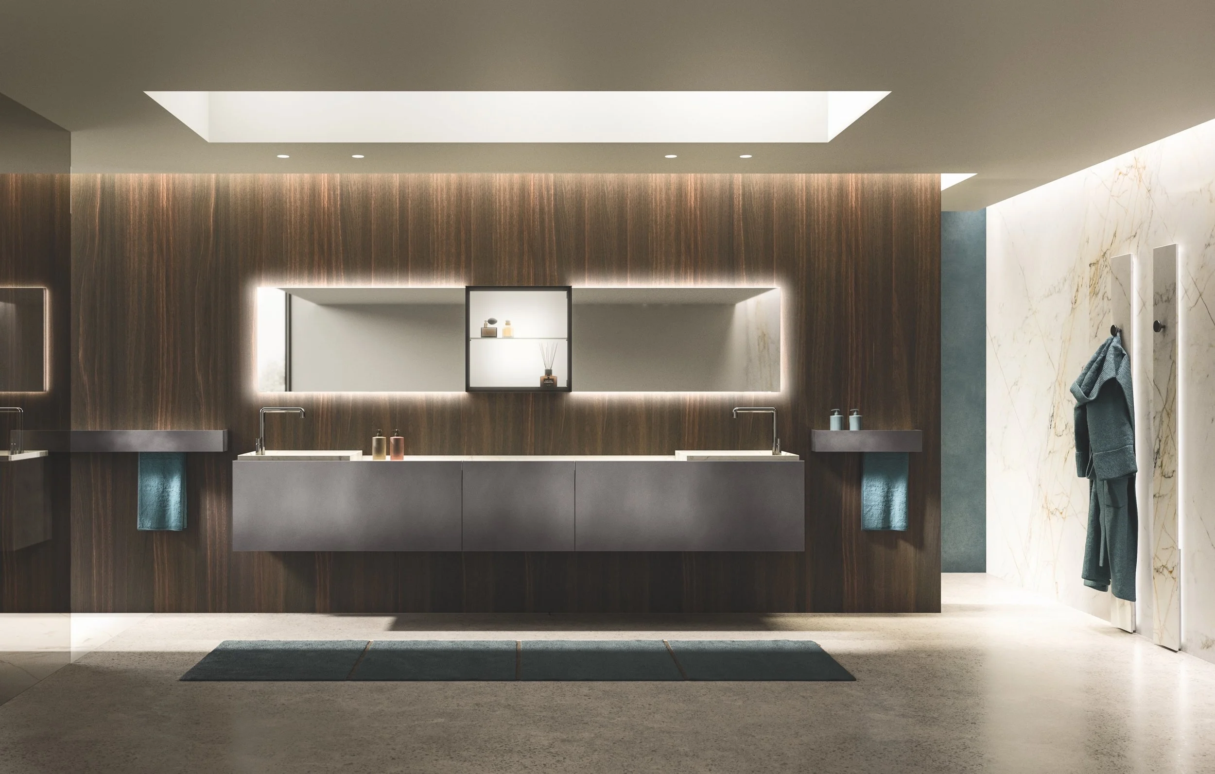 Wat meteen opvalt, is de samenhang. Achter de diversiteit van de collecties – 360Gradi, Lympha, Must en Modo-Project – schuilt een en hetzelfde idee: de badkamer als open, groeiend en bijna levend systeem. Een ruimte die de materialen laat spreken, breuklijnen verzacht, zich aanpast, en met haar bewoners meegroeit. Zo creëert Arrital een fluïde, bijna intuïtieve benadering die past bij een wereld waar woningen steeds hybrider wordt.
