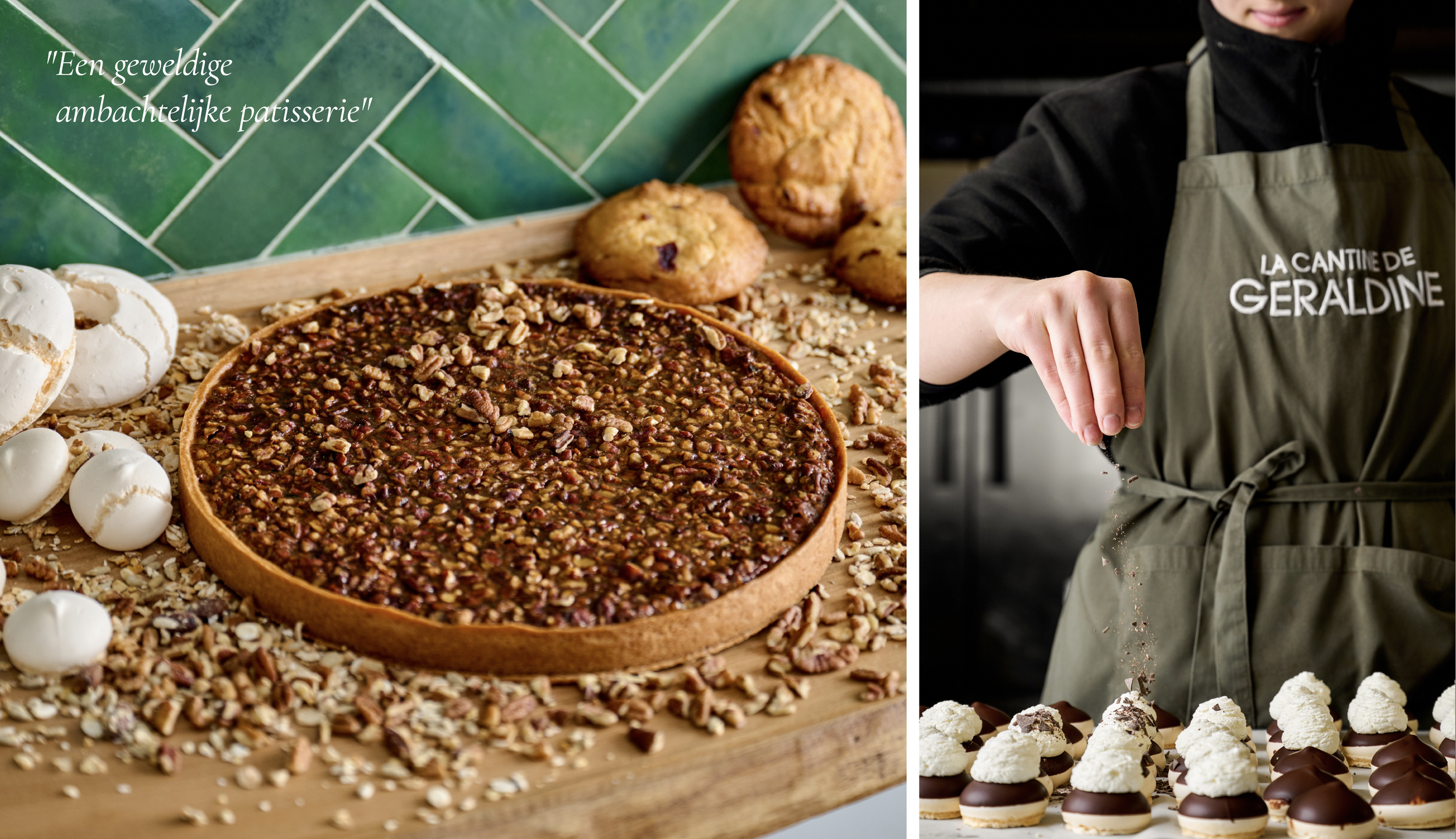 À La Cantine de Géraldine, la véritable richesse, ce sont les équipes. À la tête de l’atelier, Thierry Jourdevant, pâtissier‑chef bien connu de la scène bruxelloise, signe un savoir-faire empreint de technique et de saveurs. Passé par Rob The Gourmets’ Market, il apporte à La Cantine de Géraldine toute sa créativité. Autour de lui, une équipe de 12 collaborateurs passionnés travaille chaque jour à magnifier des incontournables, façonnés à la main, garantissant une unicité absolue : pas deux pièces identiques ne sortent de l’atelier.